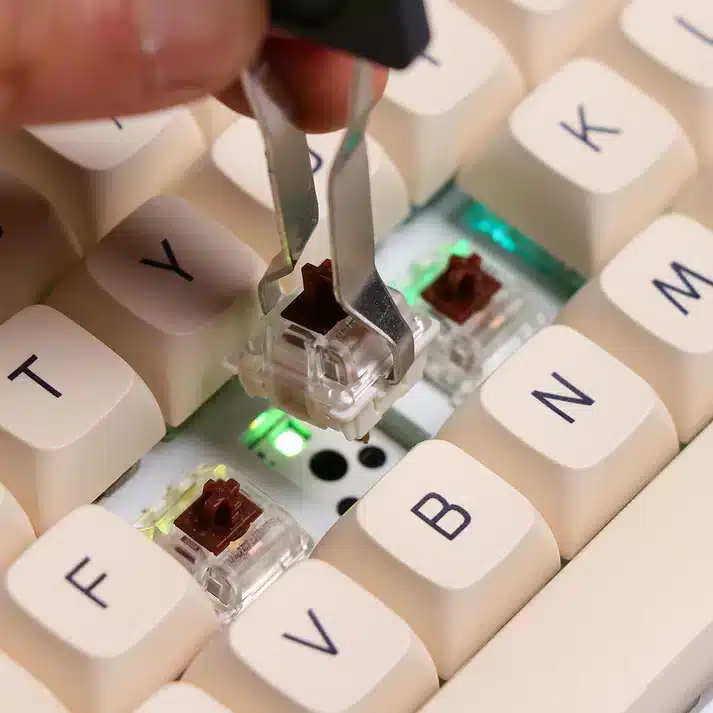 O Epomaker EP84 tem uma caraterística única que o distingue de outros teclados mecânicos: é hot-swappable. Isto significa que pode trocar facilmente os switches mecânicos por um tipo diferente, sem qualquer soldadura ou esforço. Quer um teclar com um som diferente? Basta mudar os Switches e pode ter uma experiência completamente diferente! Isto também prolonga a vida útil do teclado, uma vez que pode trocar facilmente os componentes sem deitar fora o teclado.