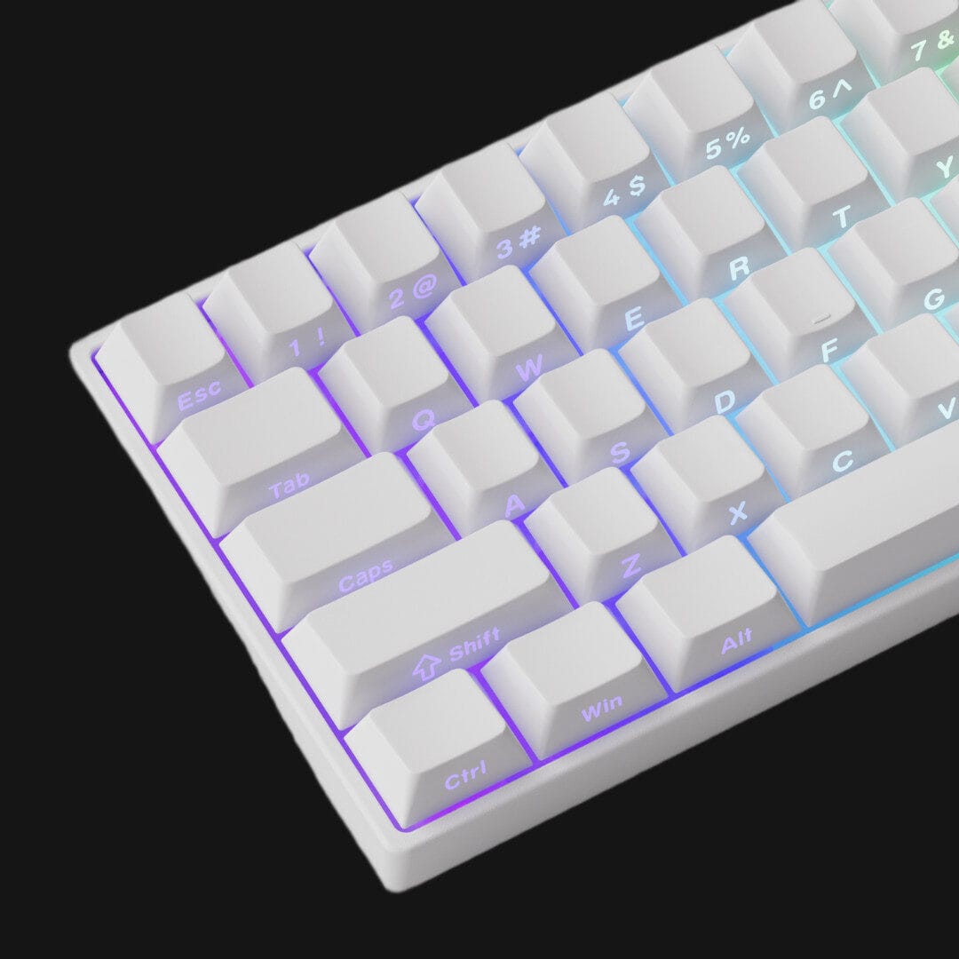 - Construção Premium & Iluminação – Estrutura tray-mounted, placa de alumínio, estabilizadores pré-lubrificados e iluminação ARGB fluida a 500Hz.